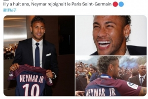 2017年8月3日,内马尔以2.22亿欧元转会费从巴萨加盟巴黎,巴黎官方社媒晒出内马尔加盟时的照片,回顾那个特别的日子。